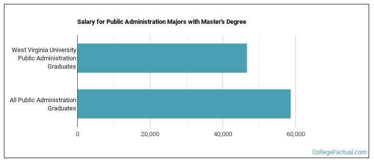 Graduates of the master's public admin program at WVU make a median salary of $46,625. This is less than what their typical peers from other schools make. Their median salary is $58,617.