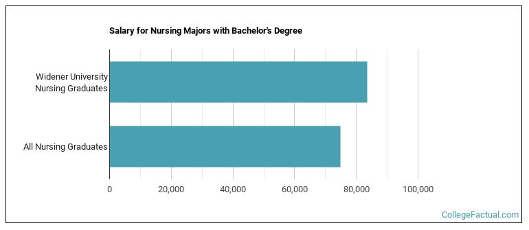 The median salary of nursing students who receive their bachelor's degree at Widener is $83,528. This is higher than $74,888, which is the national median for all nursing bachelor's degree recipients.