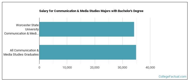The median salary of communications students who receive their bachelor's degree at Worcester State is $34,235. Unfortunately, this is lower than the national average of $34,959 for all communications students.
