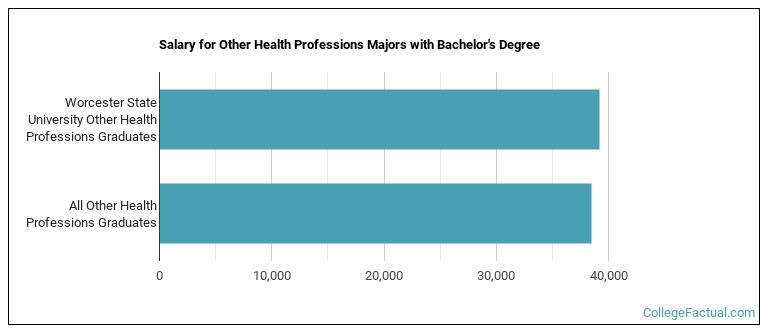 Health Professions majors who earn their bachelor's degree from Worcester State go on to jobs where they make a median salary of $39,234 a year. This is higher than $38,492, which is the national median for all health professions bachelor's degree recipients.