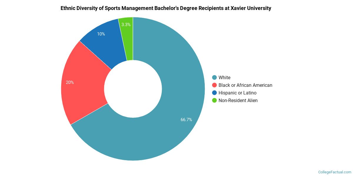 Of the 30 sports management students who graduated with a bachelor's degree in 2020-2021 from Xavier, about 67% were men and 33% were women.