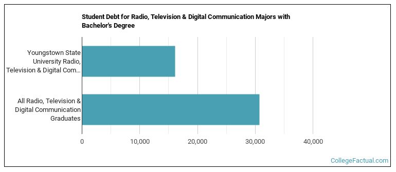 While getting their bachelor's degree at Youngstown State University, digital communication students borrow a median amount of $16,166 in student loans. This is not too bad considering that the median debt load of all digital communication bachelor's degree recipients across the country is $30,755.