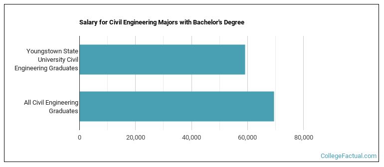 Civil Eng majors who earn their bachelor's degree from Youngstown State University go on to jobs where they make a median salary of $59,149 a year. This is less than $69,566, which is the national median of all civil eng majors in the nation who earn bachelor's degrees.