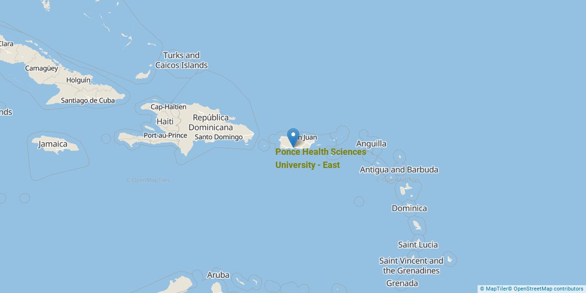 Ponce Health Sciences University - East is a private for-profit institution located in Ponce, Puerto Rico. The location of the school is great for students who enjoy the amenities of city life.